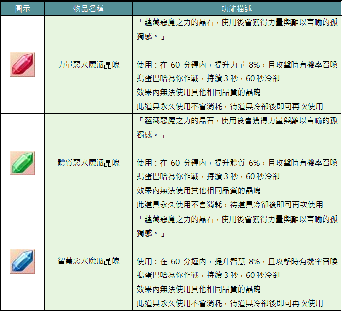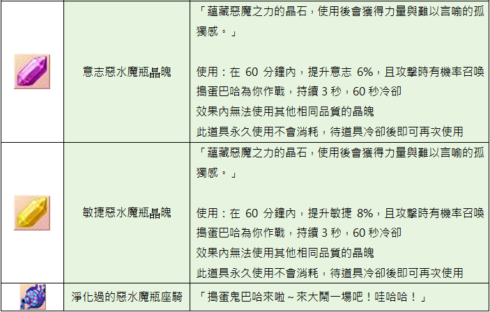 解完上述任務後,有機會獲得物品各屬性晶魄石、淨化過的惡水魔瓶座騎(三天版)或(永久版)等獎勵。